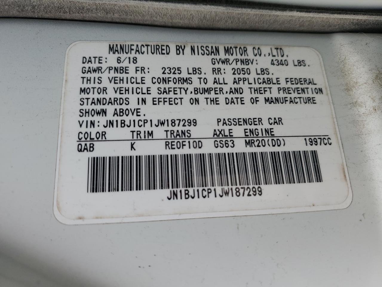 Цвет БелыйЦилиндры 4VIN JN1BJ1CP1JW187299Состояние Заводится и едет (проверено)Повреждение Передняя или задняяДата аукциона 2025-11-04