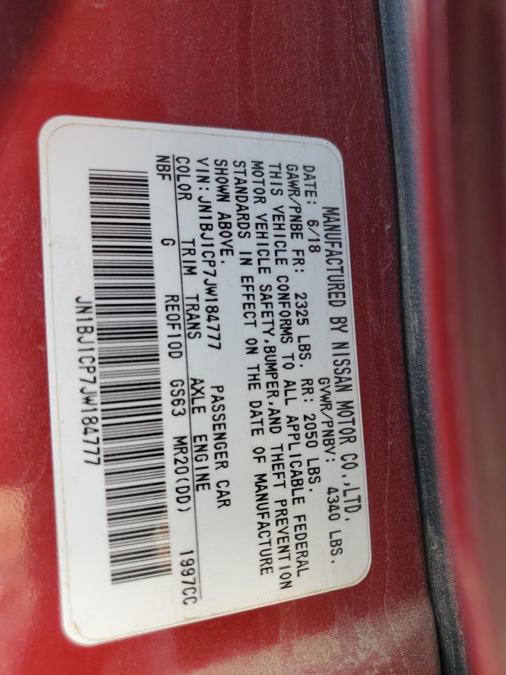 Цвет КрасныйЦилиндры 4VIN JN1BJ1CP7JW184777Состояние НеизвестноПовреждение Передняя или задняя