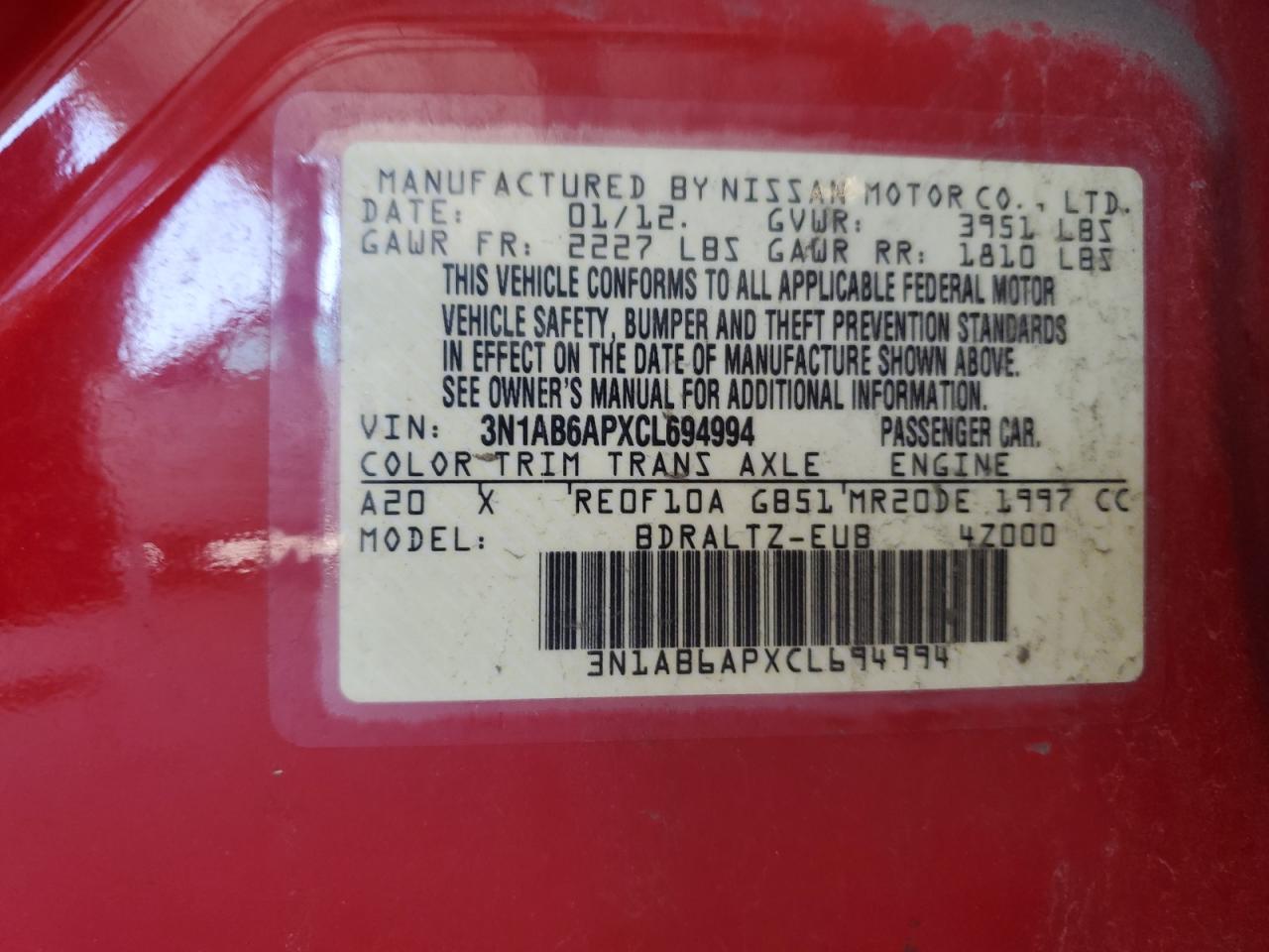 2012 NISSAN SENTRA 2.0