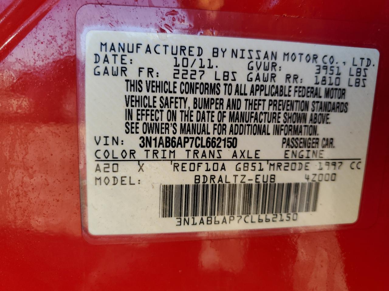 Цвет КрасныйЦилиндры 4VIN 3N1AB6AP7CL662150Состояние Заводится и едет (проверено)Повреждение Передняя или задняя