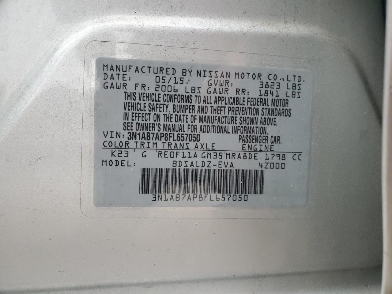 Цвет СеребряныйЦилиндры 4VIN 3N1AB7AP8FL657050Состояние Заводится и едет (проверено)Повреждение По бокам