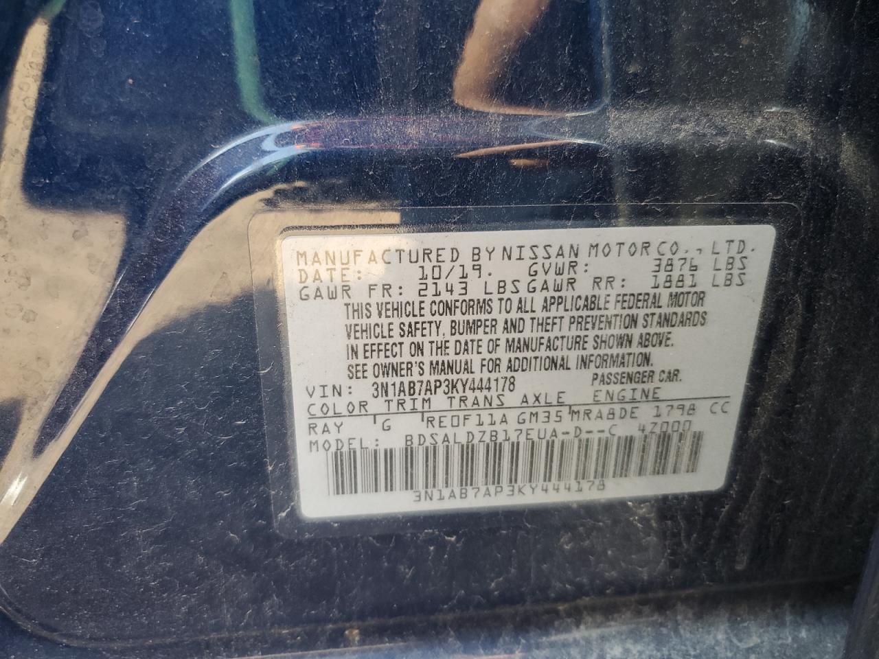 NISSAN SENTRA 1.8 2019 г.в., (3N1AB7AP3KY444178) из США