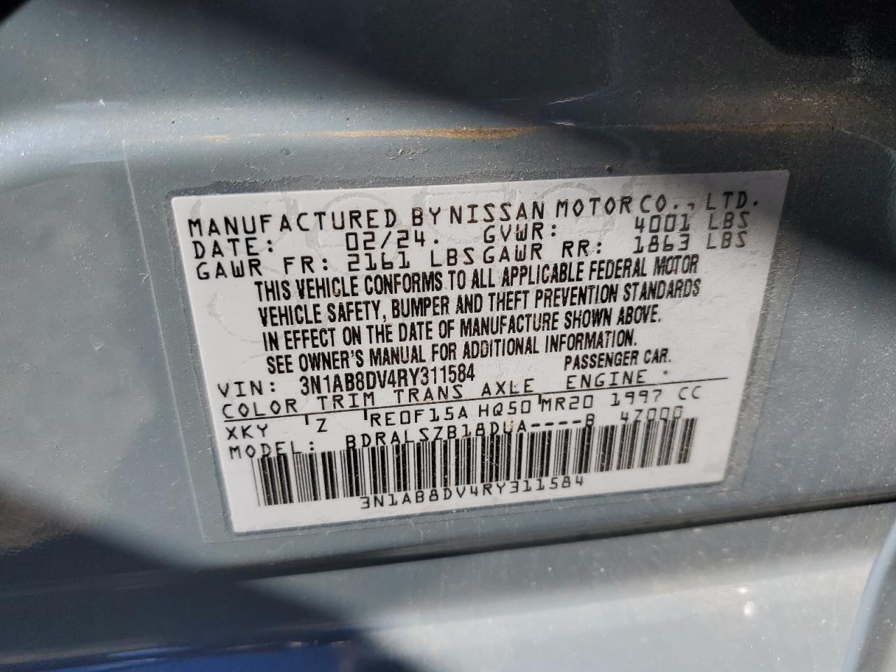 NISSAN SENTRA 2.0 2024 г.в., (3N1AB8DV4RY311584) из США