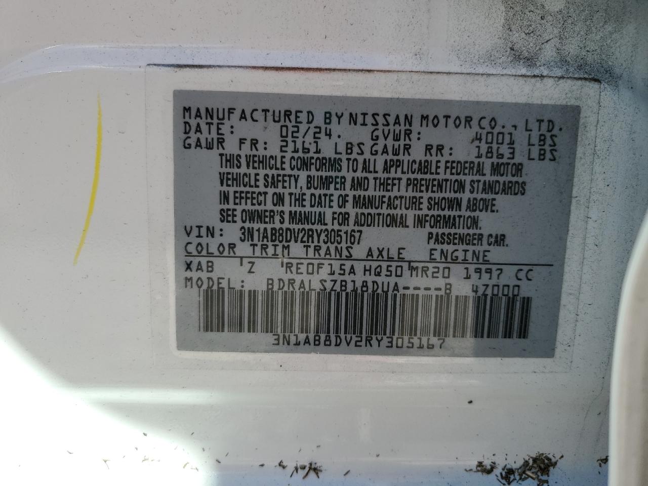 NISSAN SENTRA 2.0 2024 г.в., (3N1AB8DV2RY305167) из США