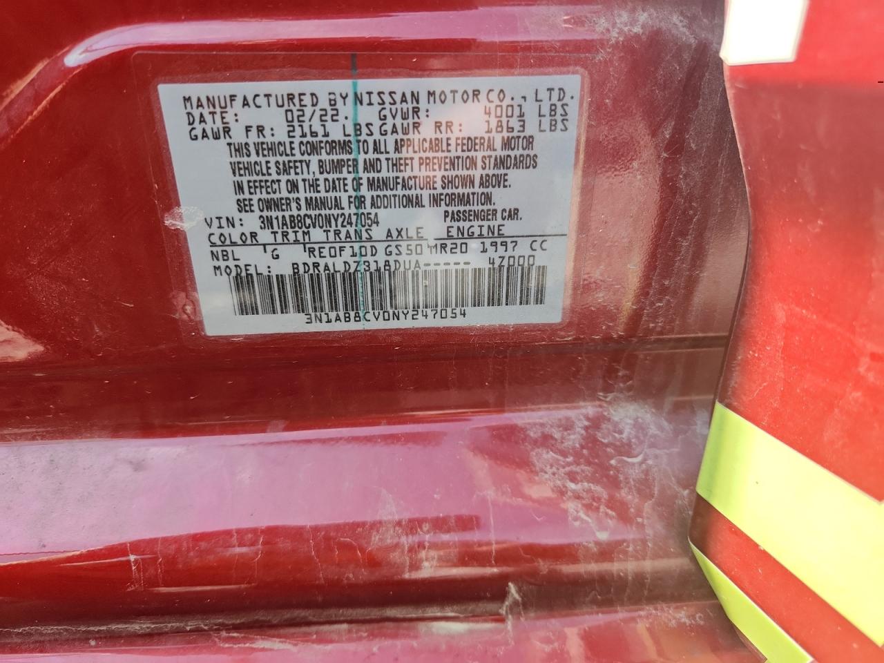 NISSAN SENTRA 2.0 2022 г.в., (3N1AB8CV0NY247054) из США