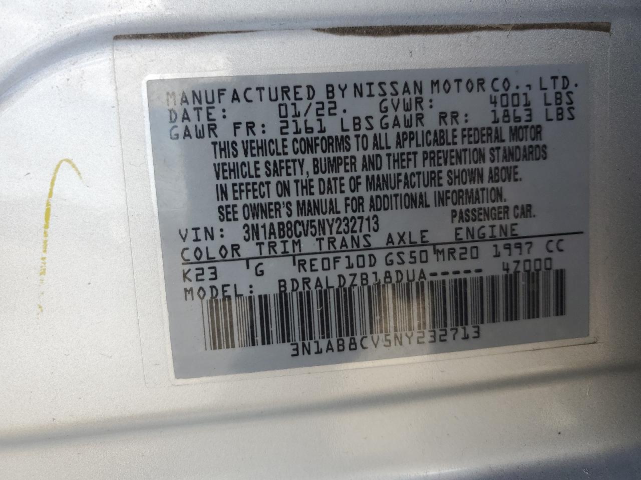 NISSAN SENTRA 2.0 2022 г.в., (3N1AB8CV5NY232713) из США