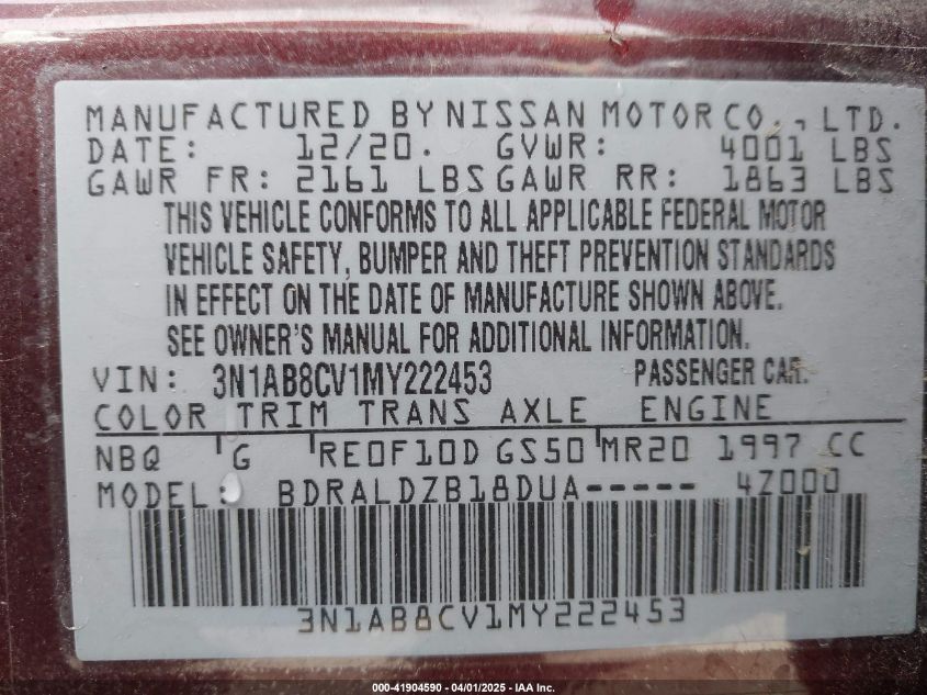 NISSAN SENTRA 2.0 2021 г.в., Передний привод (3N1AB8CV1MY222453) из США