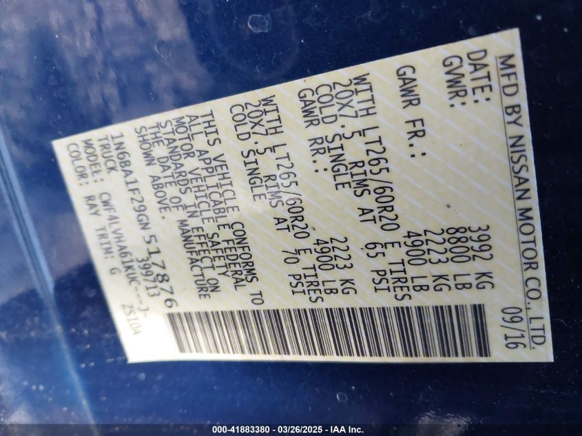 NISSAN TITAN 5.0 2016 г.в., (1N6BA1F29GN517876) из США