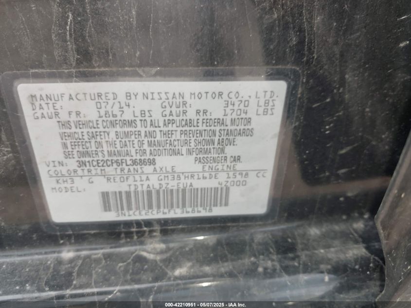 2015 NISSAN VERSA NOTE S PLUS/SV/SR/S (SR)/SL