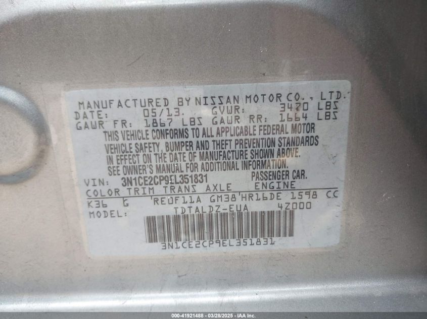 NISSAN VERSA NOTE 1.6 2014 г.в., Неизвестно (3N1CE2CP9EL351831) из США