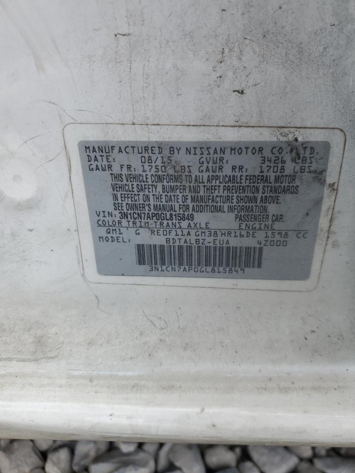 NISSAN VERSA 1.6 2016 г.в., (3N1CN7AP0GL815849) из США