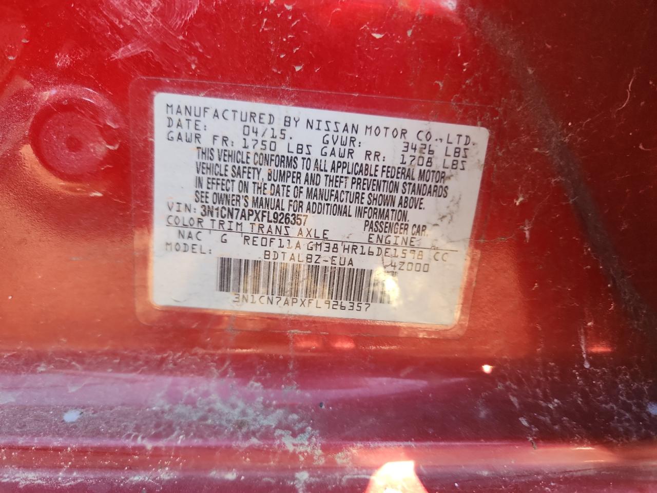 Цвет КрасныйЦилиндры 4VIN 3N1CN7APXFL926357Состояние НеизвестноПовреждение Передняя или задняя