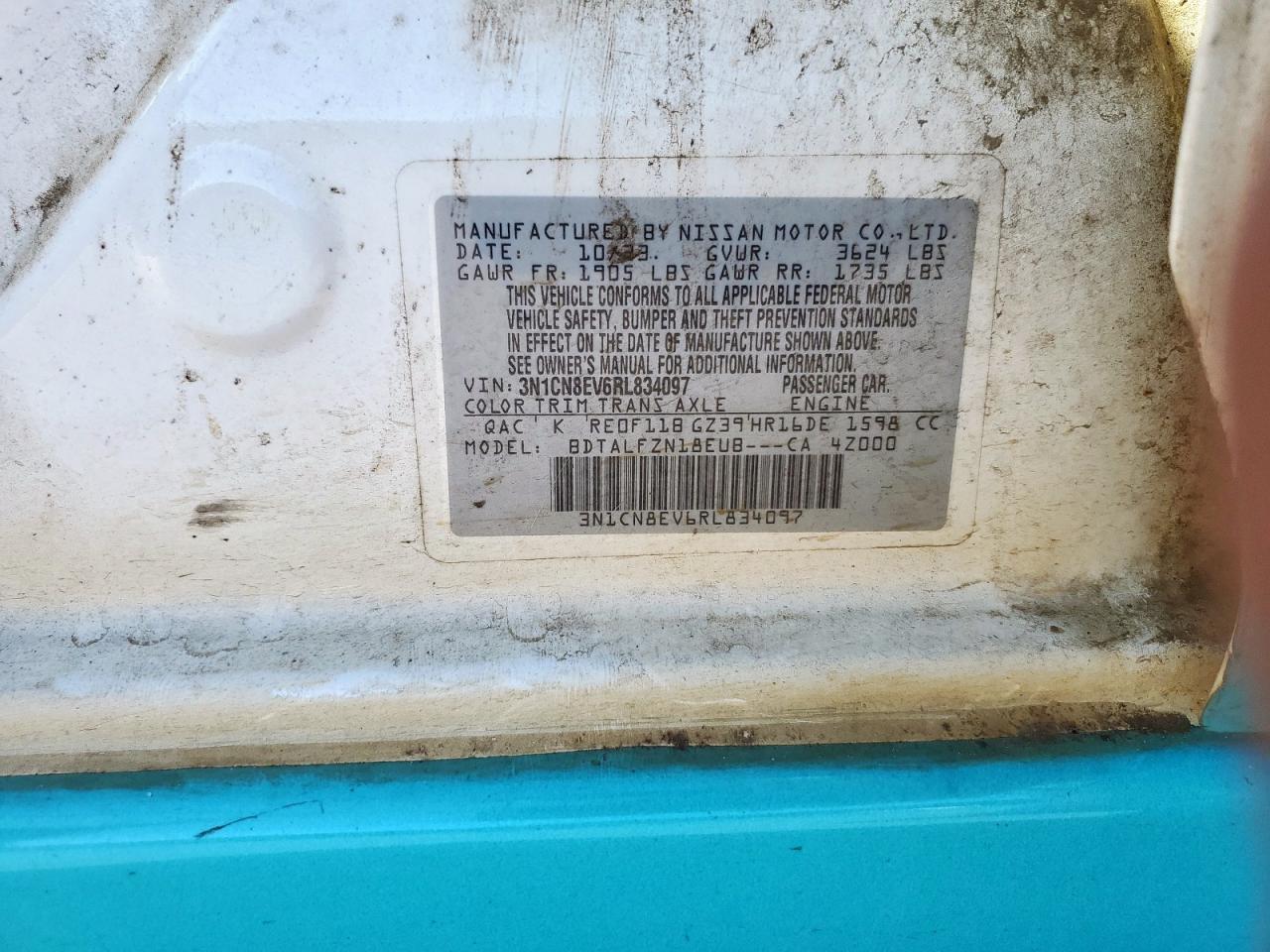 Цвет БелыйЦилиндры 4VIN 3N1CN8EV6RL834097Состояние НеизвестноПовреждение Передняя или задняяДата аукциона 2025-11-03