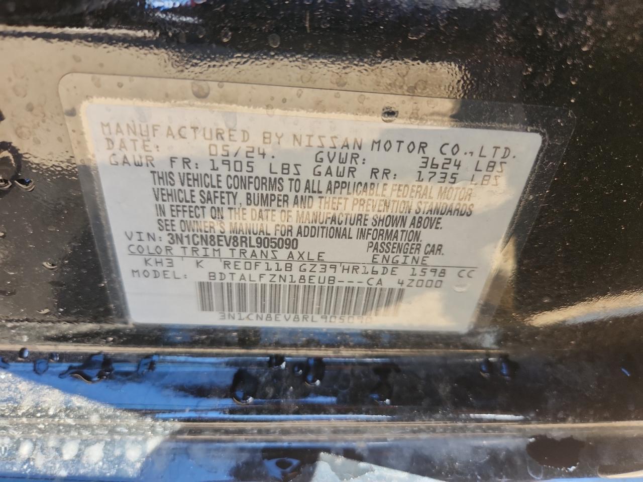 NISSAN VERSA 1.6 2024 г.в., (3N1CN8EV8RL905090) из США