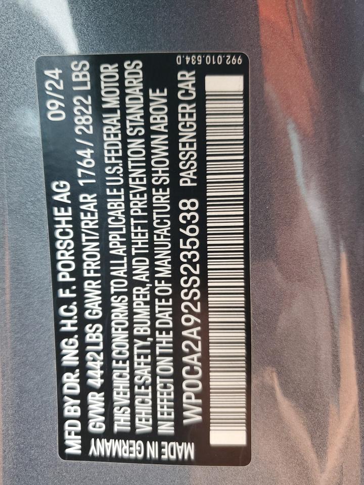 PORSCHE 911 3.0 2025 г.в., Задний привод (WP0CA2A92SS235638) из США