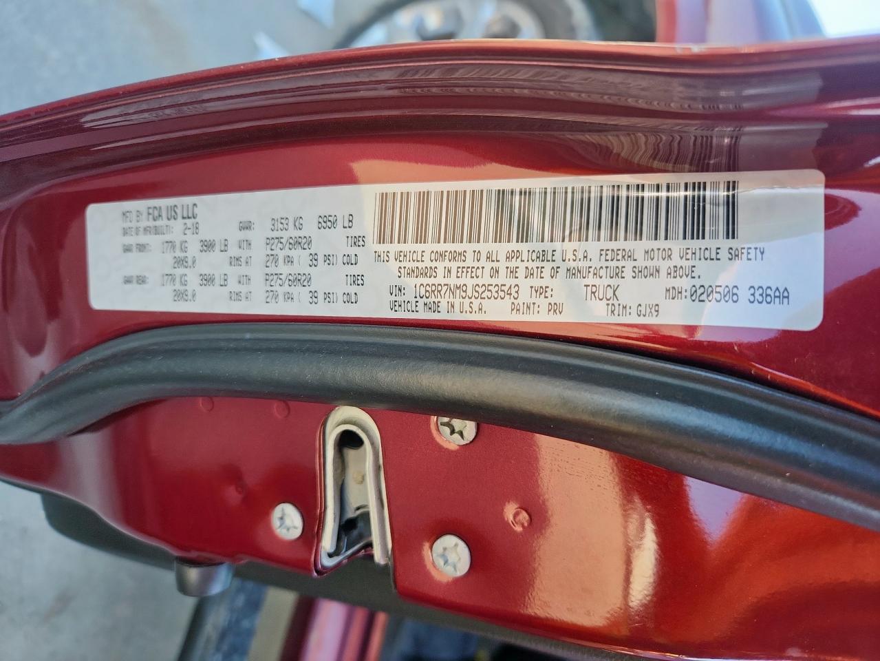 RAM 1500 3.0 2018 г.в., 4x4 с задним приводом (1C6RR7NM9JS253543) из США