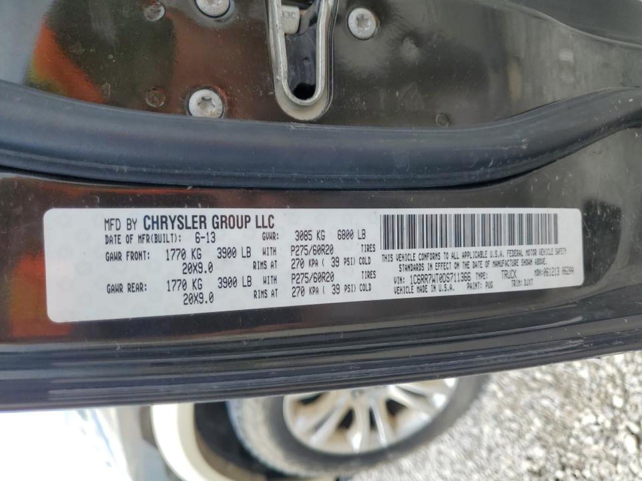 RAM 1500 5.7 2013 г.в., 4x4 с задним приводом (1C6RR7WT0DS711366) из США