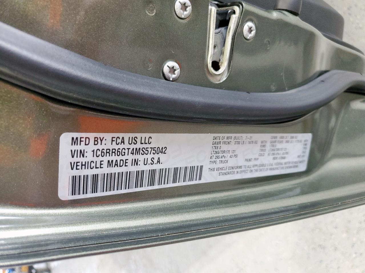 RAM 1500 5.7 2021 г.в., Задний привод (1C6RR6GT4MS575042) из США