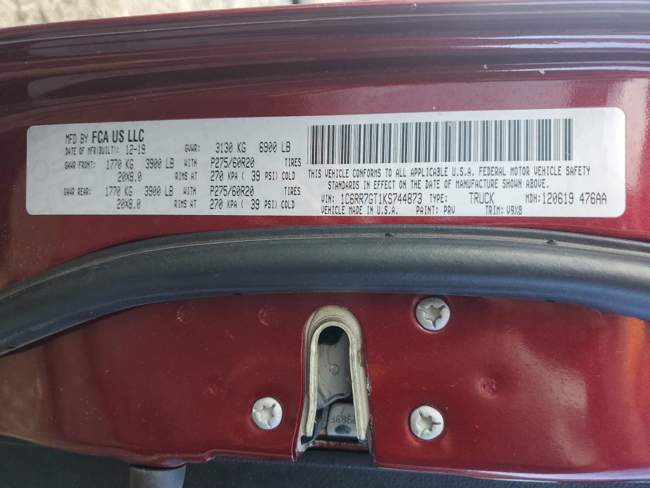 RAM 1500 5.7 2019 г.в., 4x4 с задним приводом (1C6RR7GT1KS744873) из США