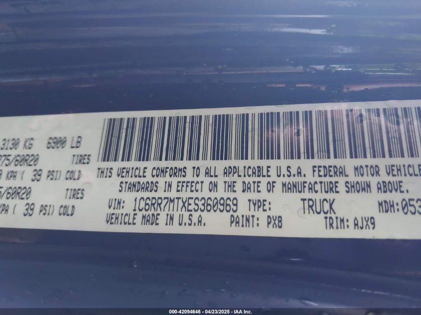 RAM 1500 5.7 2014 г.в., Полный привод (1C6RR7MTXES360969) из США