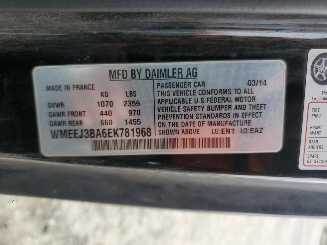 Цвет 2 оттенкаЦилиндры 3Привод Задний приводVIN WMEEJ3BA6EK781968Состояние Заводится и едет (проверено)Повреждение Передняя или задняяДата аукциона 2025-11-04