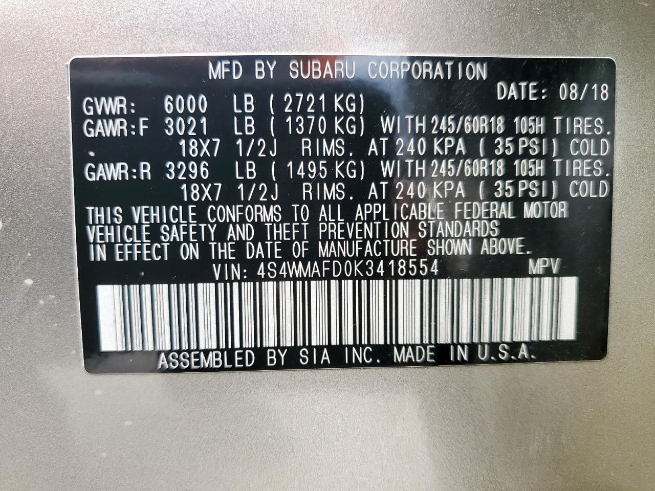 SUBARU ASCENT 2.4 2019 г.в., Полный привод (4S4WMAFD0K3418554) из США