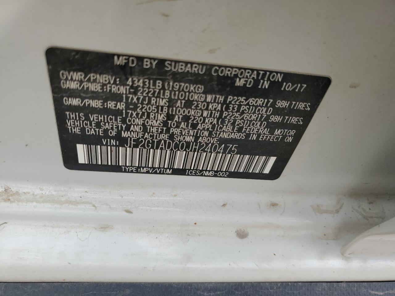 Цвет БелыйЦилиндры 4Привод Полный приводVIN JF2GTADC0JH240475Состояние Заводится и едет (проверено)Повреждение Задняя