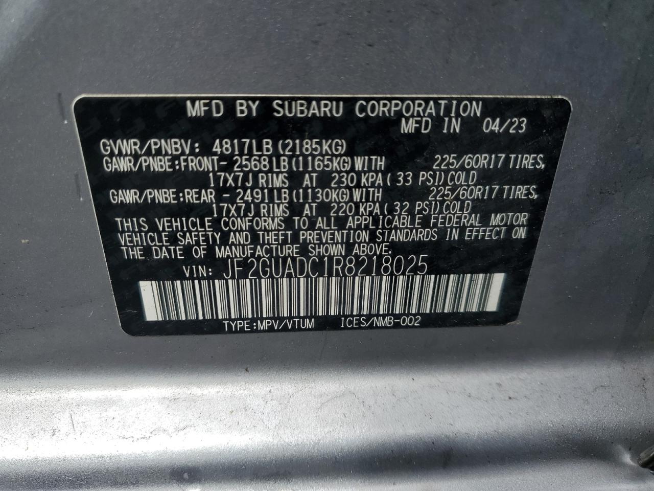 SUBARU CROSSTREK 2.0 2024 г.в., Полный привод (JF2GUADC1R8218025) из США