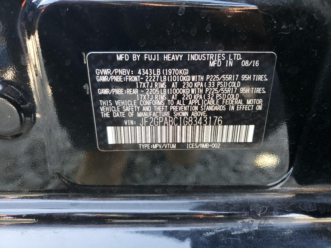 SUBARU CROSSTREK 2.0 2016 г.в., Полный привод (JF2GPABC1G8343176) из США