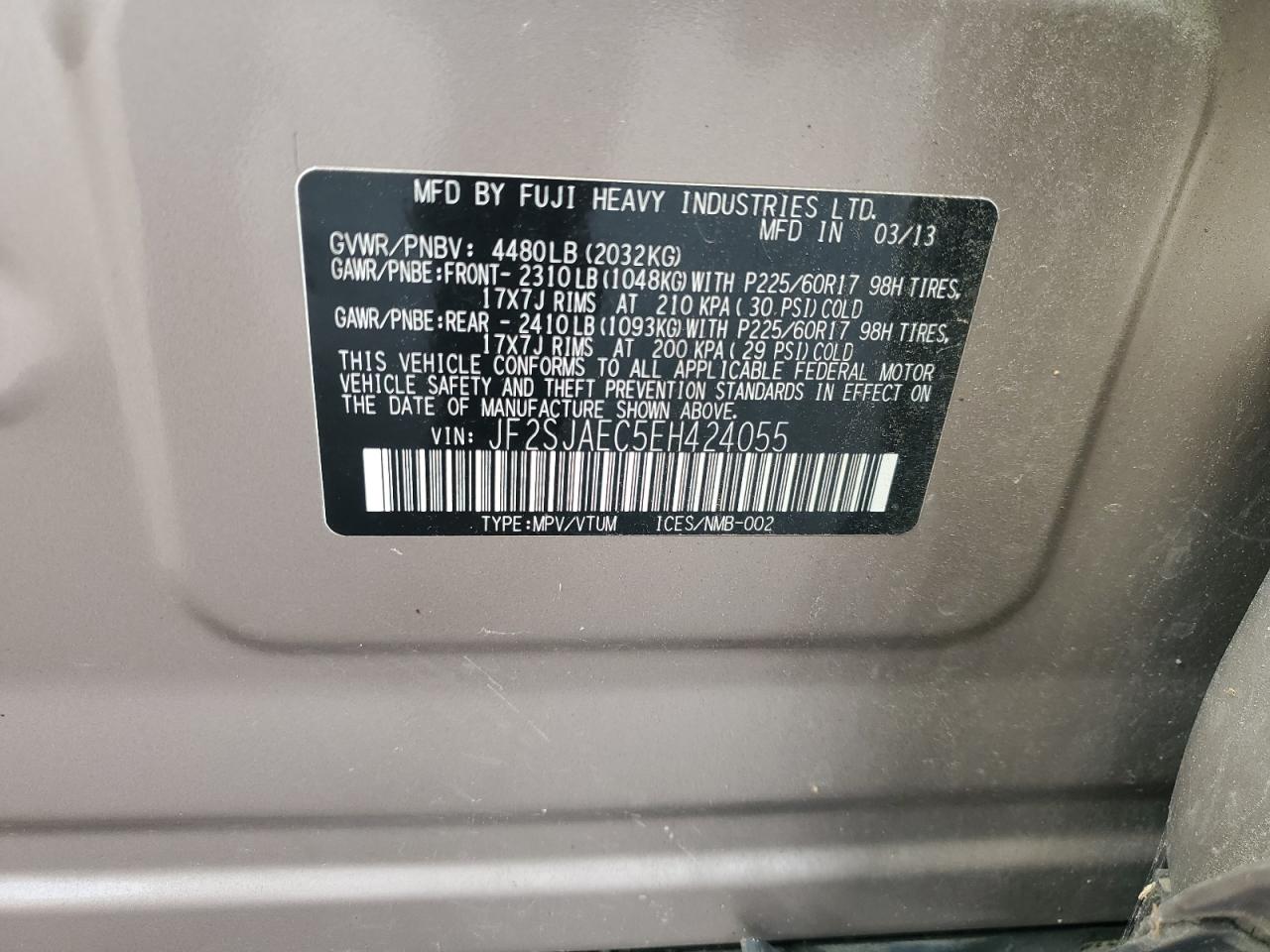 SUBARU FORESTER 2.5 2014 г.в., Полный привод (JF2SJAEC5EH424055) из США