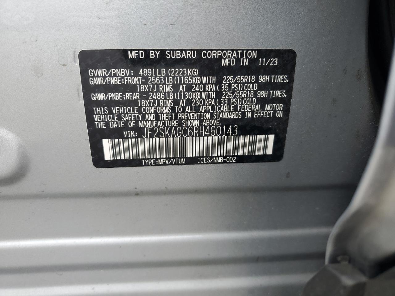 SUBARU FORESTER 2.5 2024 г.в., Полный привод (JF2SKAGC6RH460143) из США