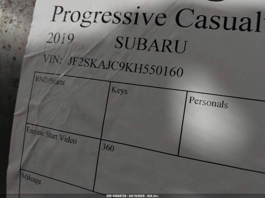 SUBARU FORESTER 2.5 2019 г.в., Полный привод (JF2SKAJC9KH550160) из США