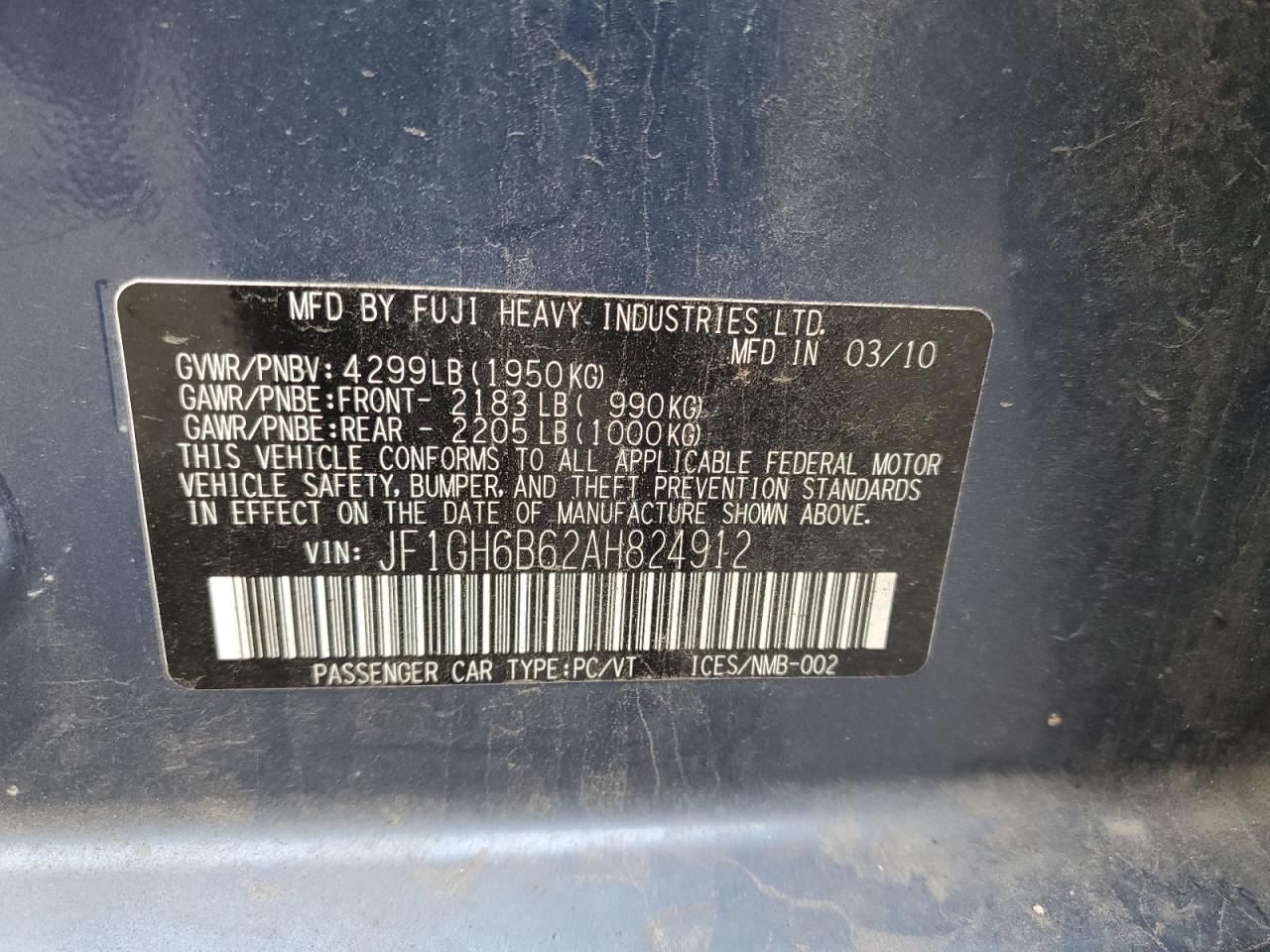 2010 SUBARU IMPREZA 2.5I