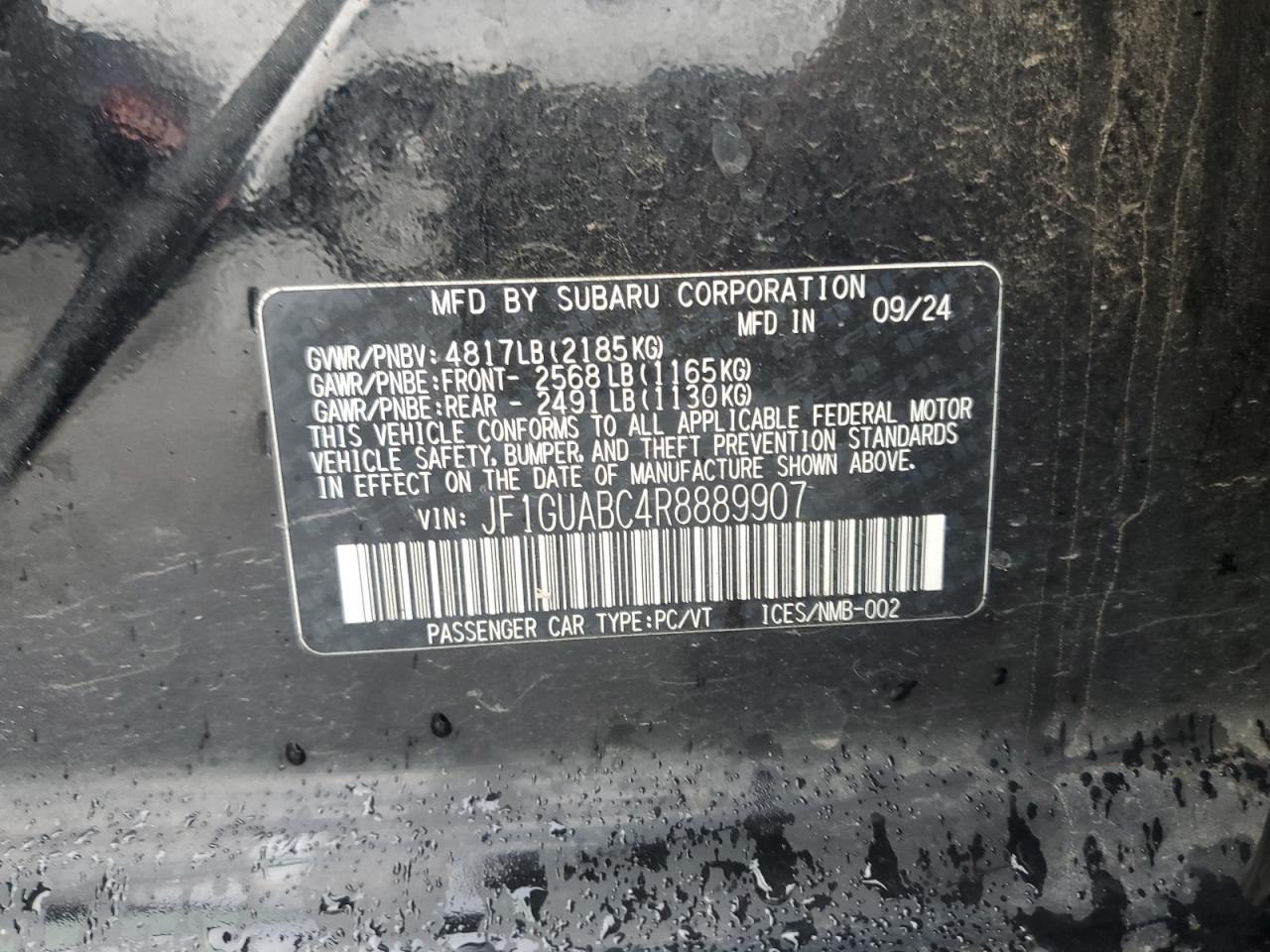 SUBARU IMPREZA 2.0 2024 г.в., Полный привод (JF1GUABC4R8889907) из США