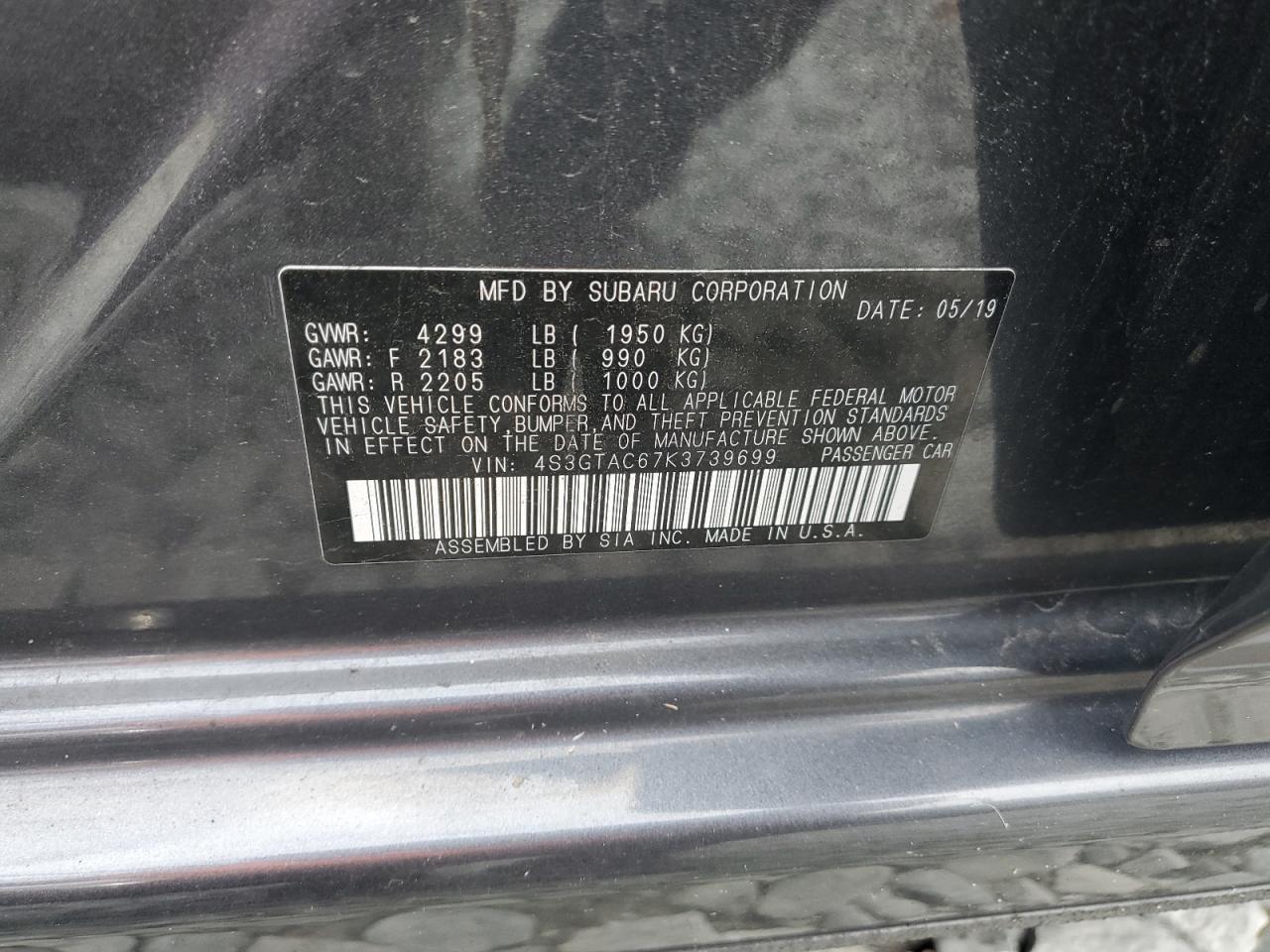 SUBARU IMPREZA 2.0 2019 г.в., Полный привод (4S3GTAC67K3739699) из США