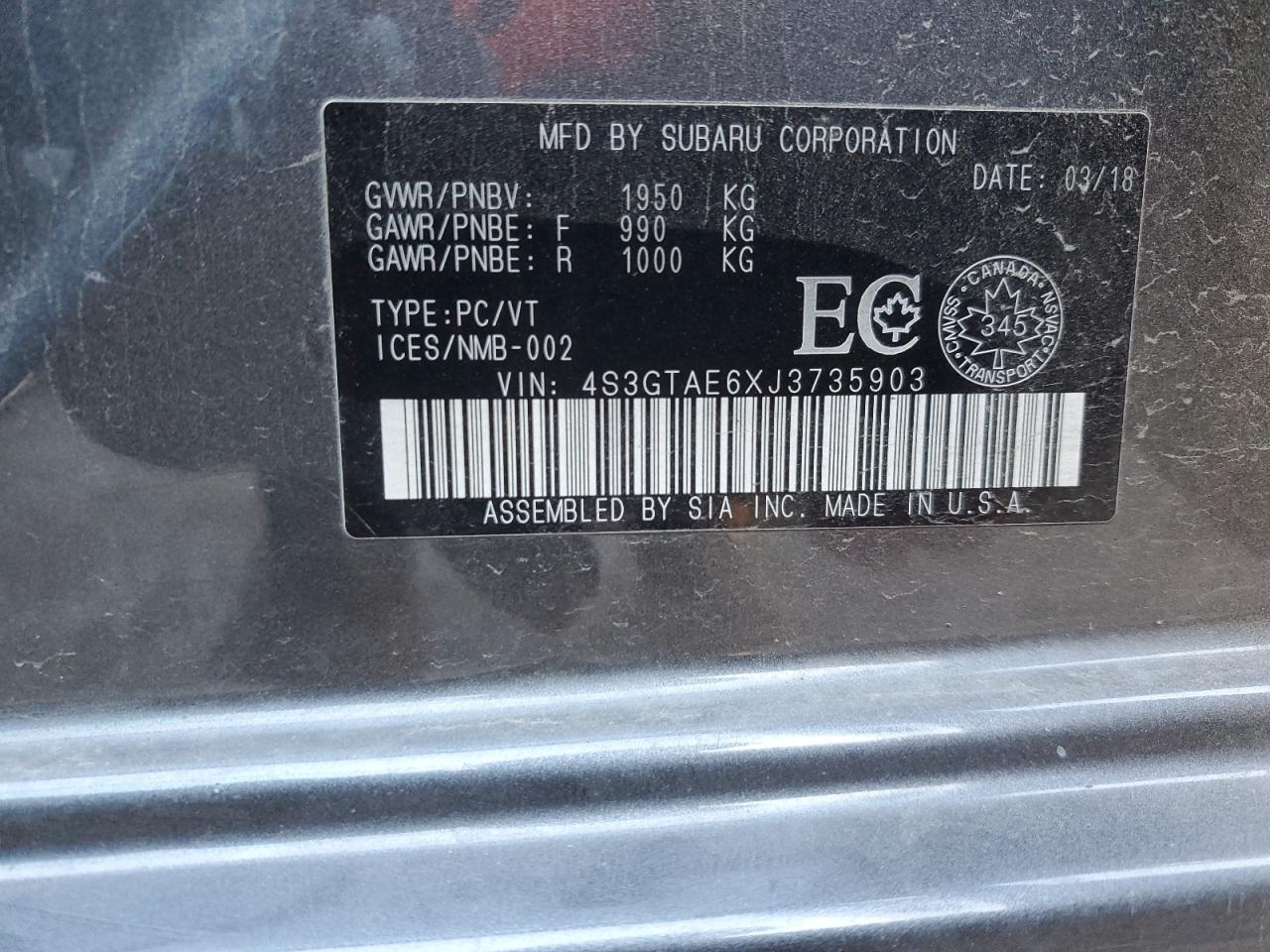 SUBARU IMPREZA 2.0 2018 г.в., Полный привод (4S3GTAE6XJ3735903) из США