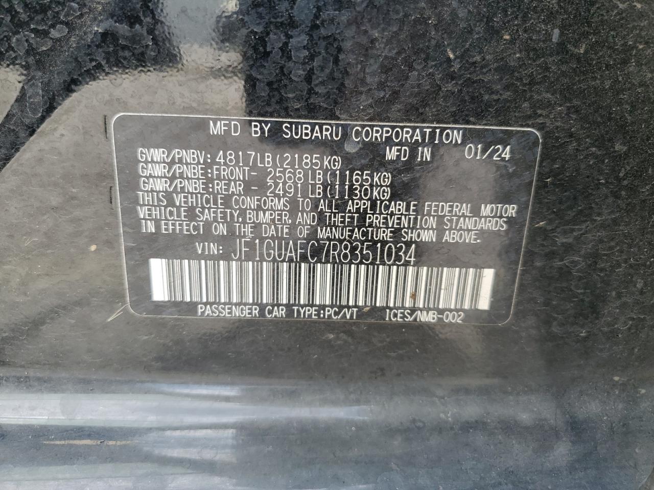 SUBARU IMPREZA 2.0 2024 г.в., Полный привод (JF1GUAFC7R8351034) из США