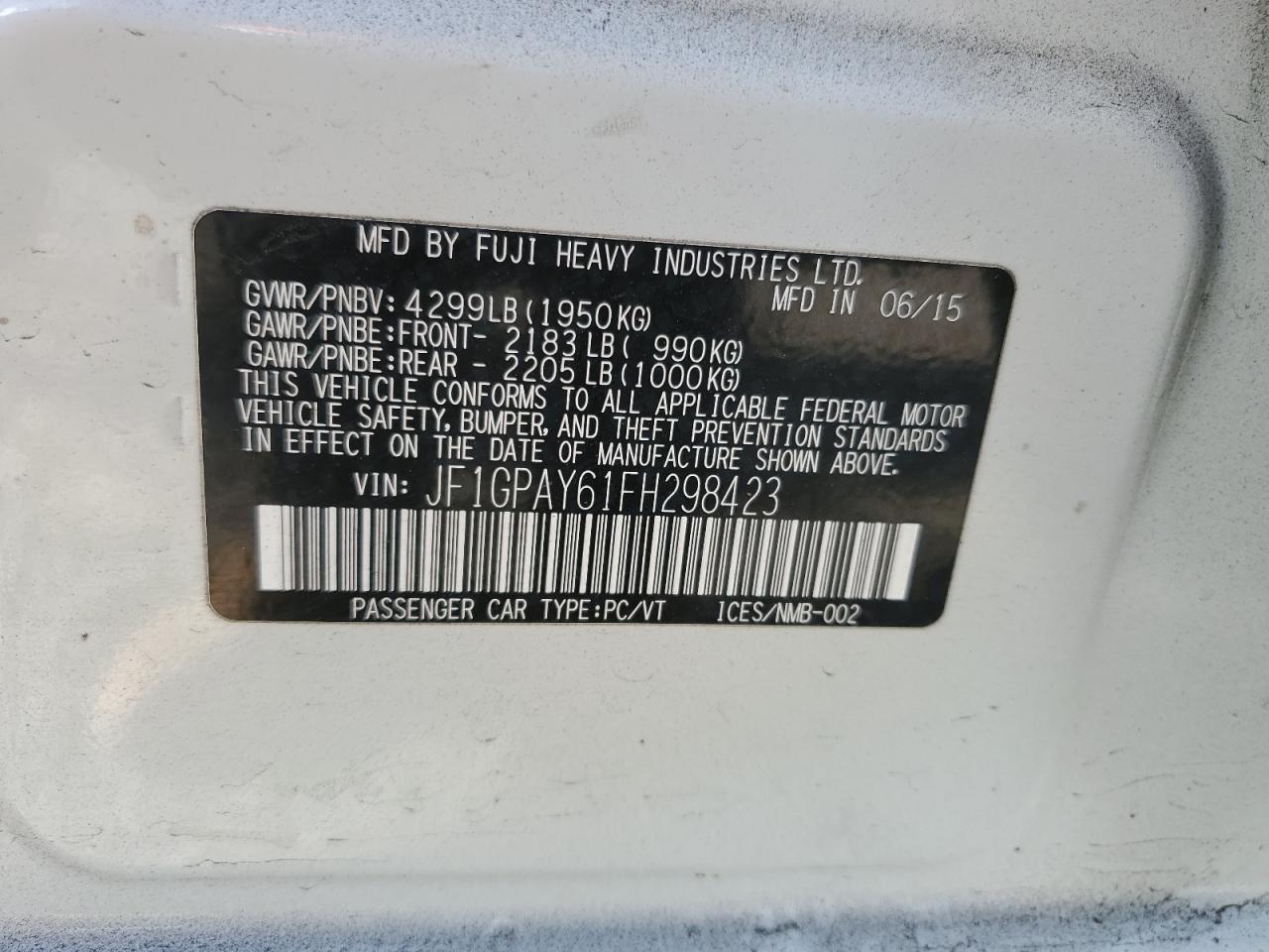 SUBARU IMPREZA 2.0 2015 г.в., Полный привод (JF1GPAY61FH298423) из США