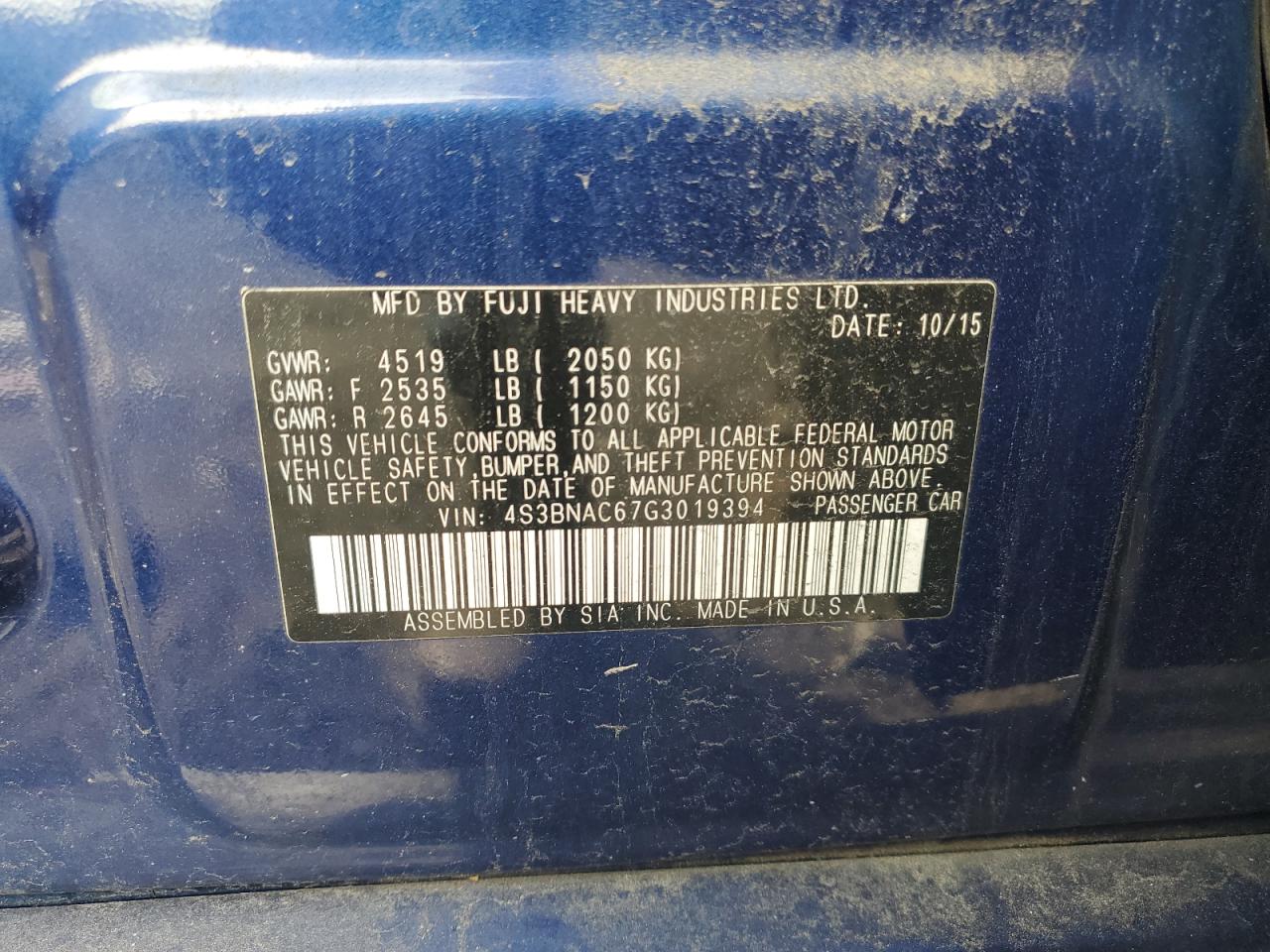 Цвет СинийЦилиндры 4Привод Полный приводVIN 4S3BNAC67G3019394Состояние Заводится и едет (проверено)Повреждение Передняя или задняя