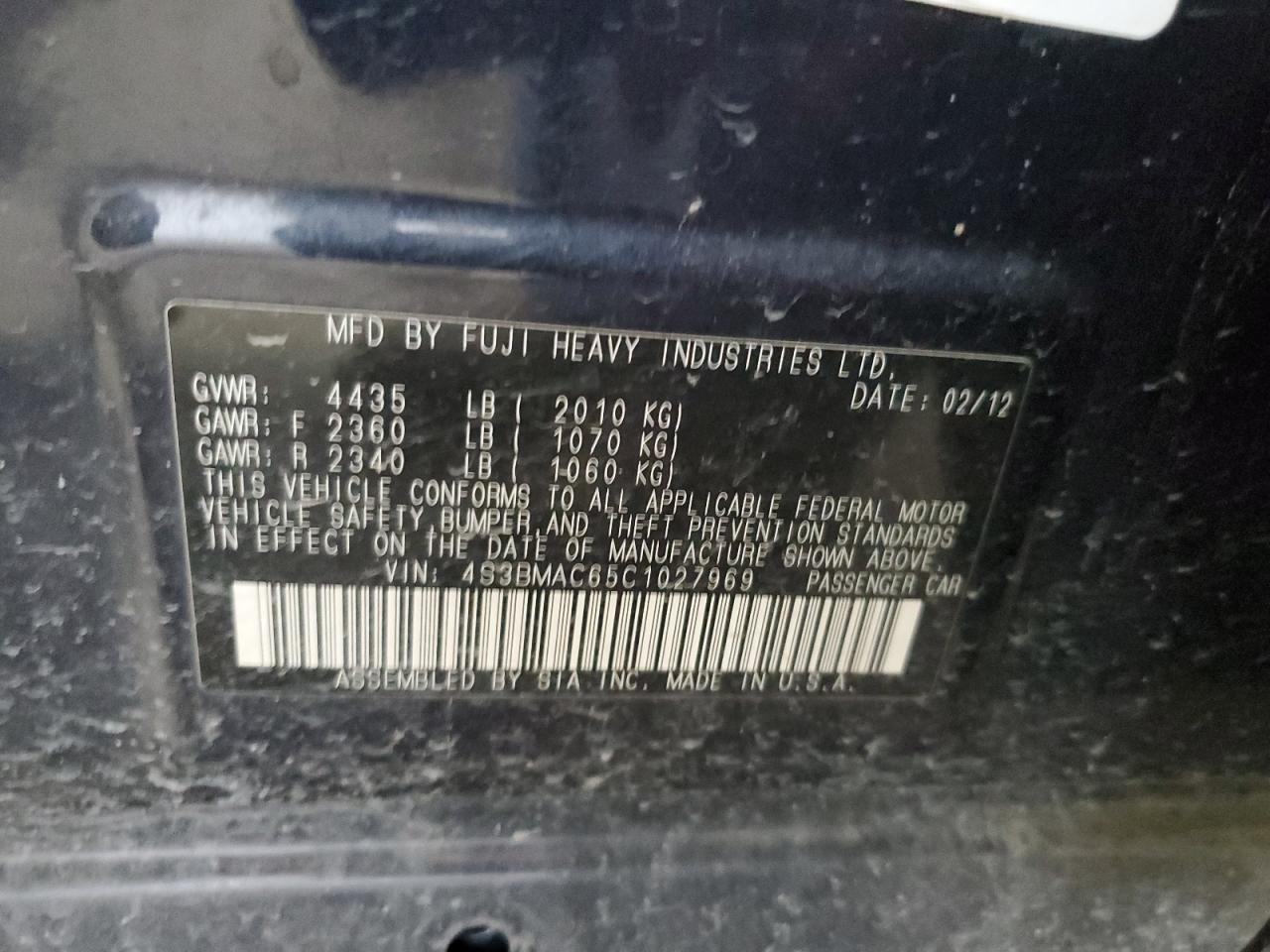 SUBARU LEGACY 2.5 2012 г.в., Полный привод (4S3BMAC65C1027969) из США