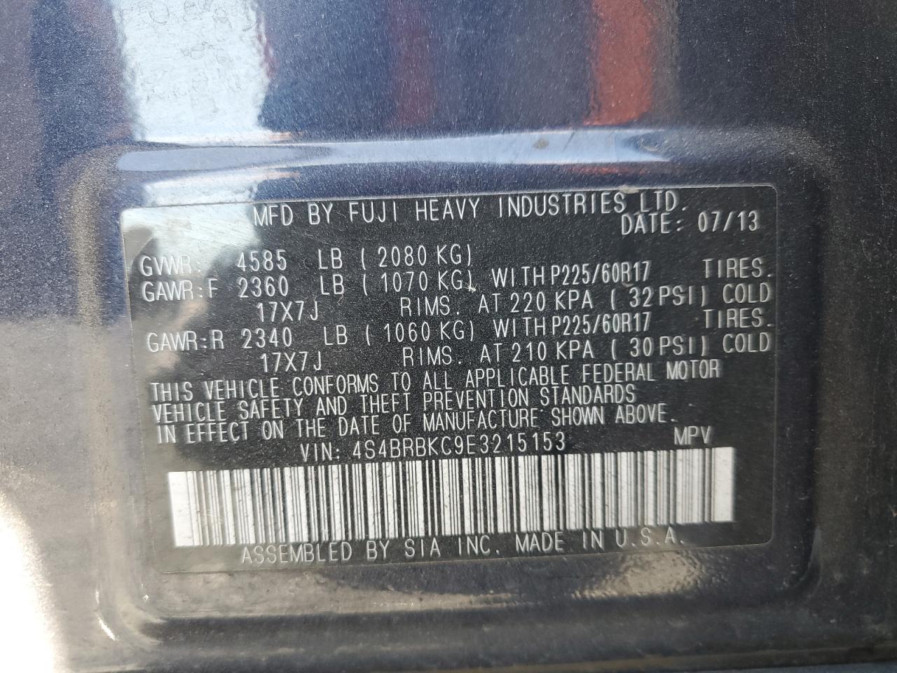 SUBARU OUTBACK 2.5 2014 г.в., Полный привод (4S4BRBKC9E3215153) из США