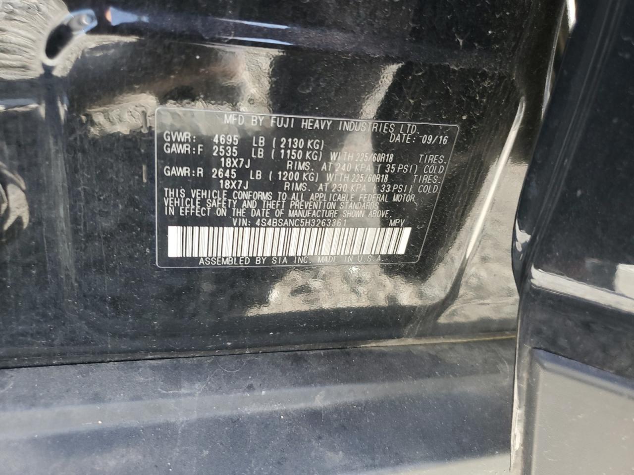 SUBARU OUTBACK 2.5 2017 г.в., Полный привод (4S4BSANC5H3263361) из США