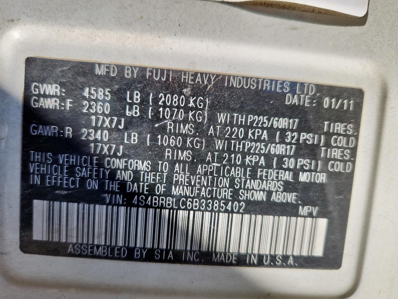 2011 SUBARU OUTBACK 2.5I LIMITED