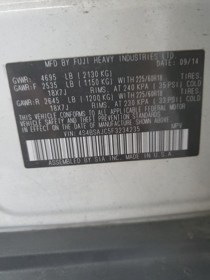 SUBARU OUTBACK 2.5 2015 г.в., Полный привод (4S4BSAJC5F3234235) из США