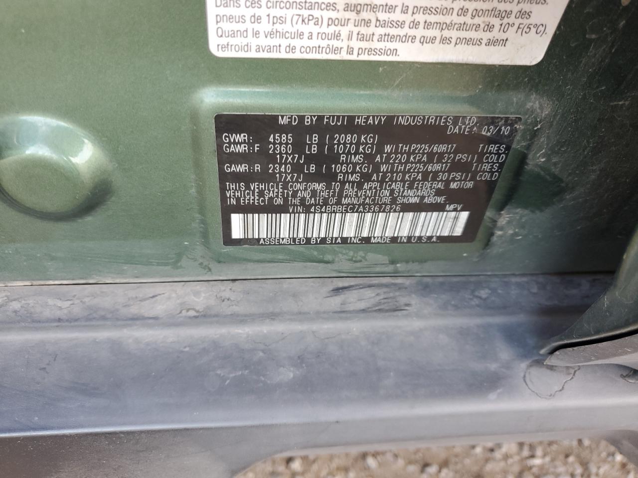 SUBARU OUTBACK 2.5 2010 г.в., Полный привод (4S4BRBEC7A3367826) из США
