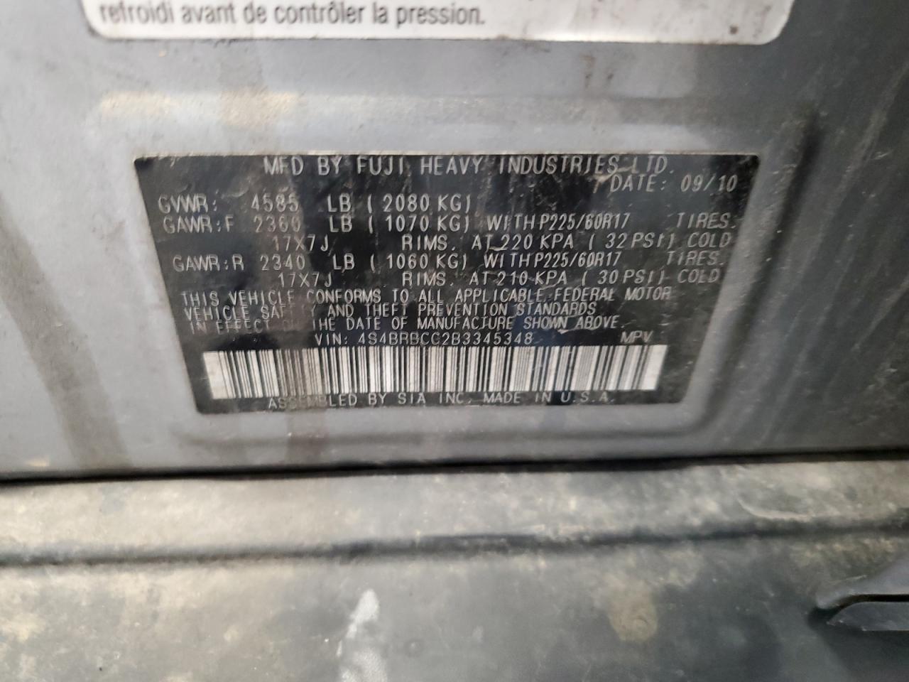 SUBARU OUTBACK 2.5 2011 г.в., Полный привод (4S4BRBCC2B3345348) из США