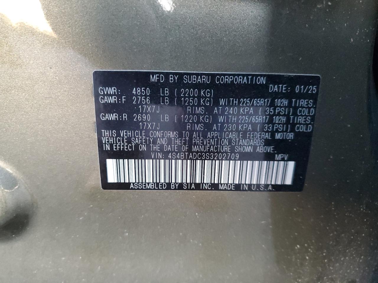 SUBARU OUTBACK 2.5 2025 г.в., Полный привод (4S4BTADC3S3202709) из США