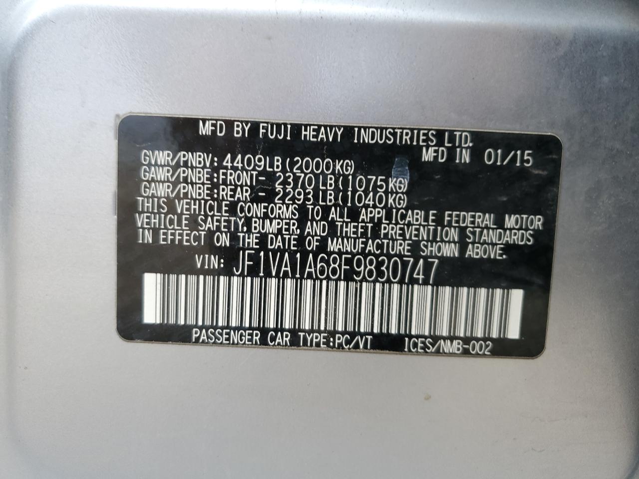SUBARU WRX 2.0 2015 г.в., Полный привод (JF1VA1A68F9830747) из США