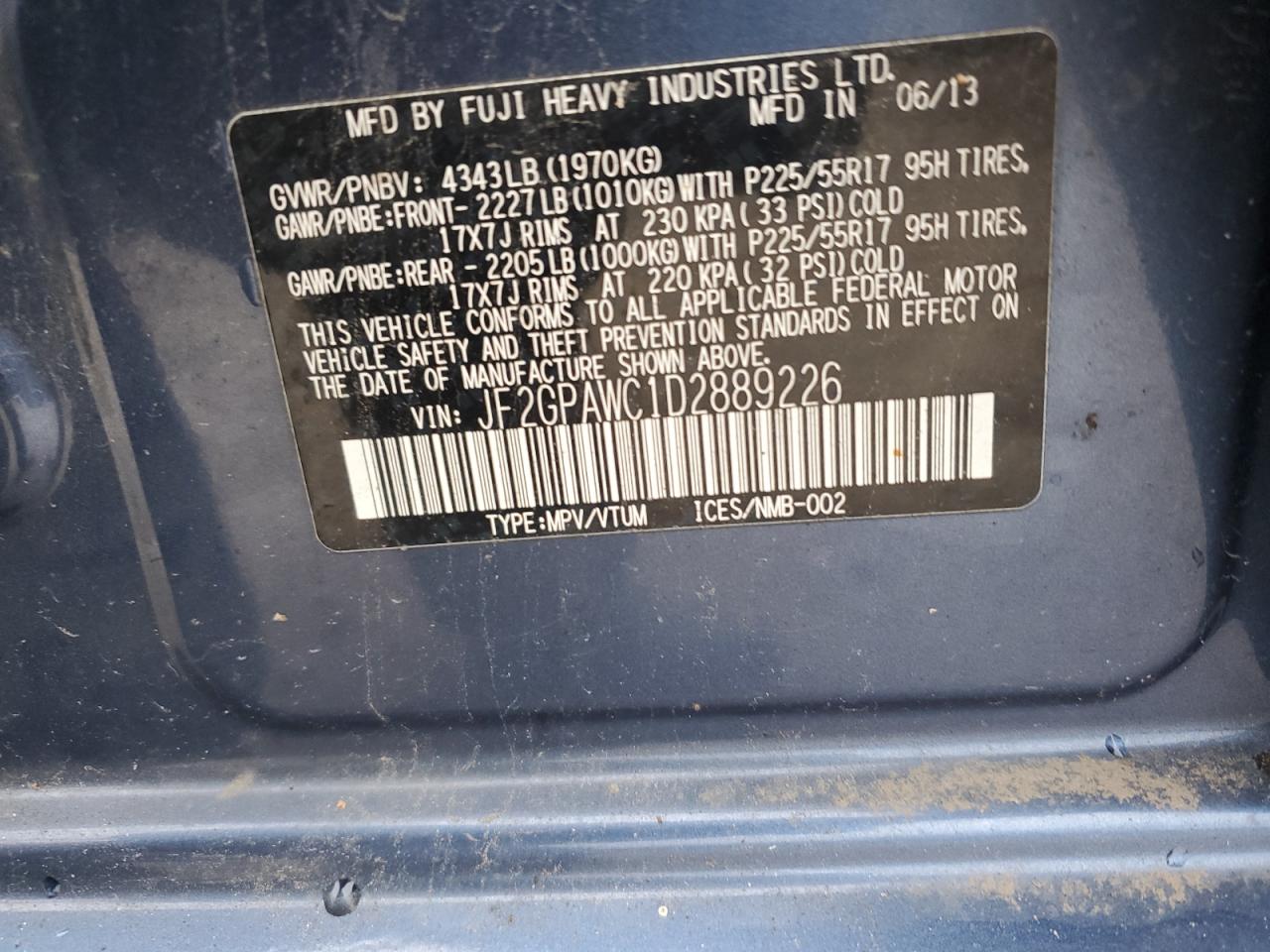 SUBARU XV 2.0 2013 г.в., Полный привод (JF2GPAWC1D2889226) из США