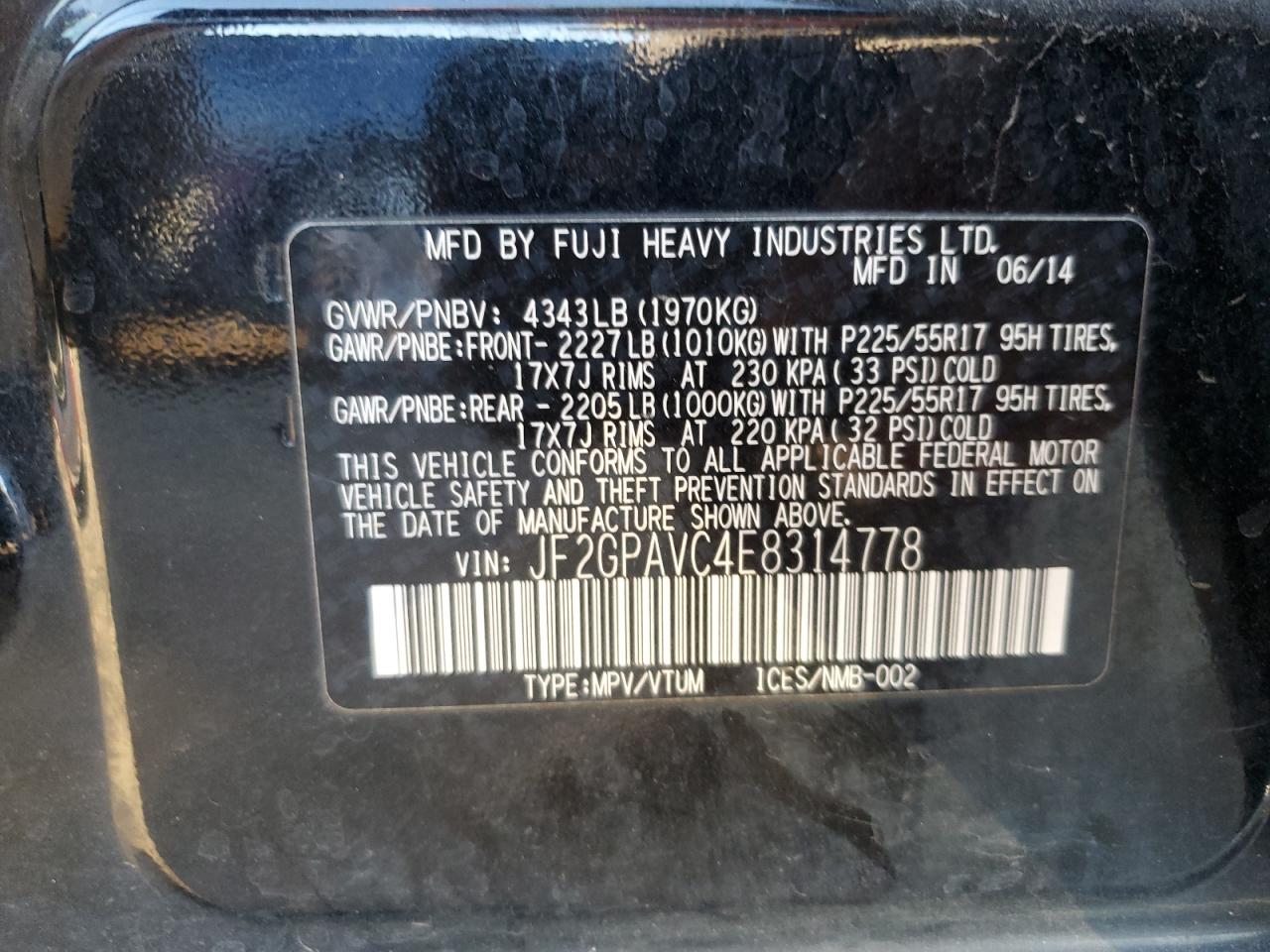 SUBARU XV 2.0 2014 г.в., Полный привод (JF2GPAVC4E8314778) из США
